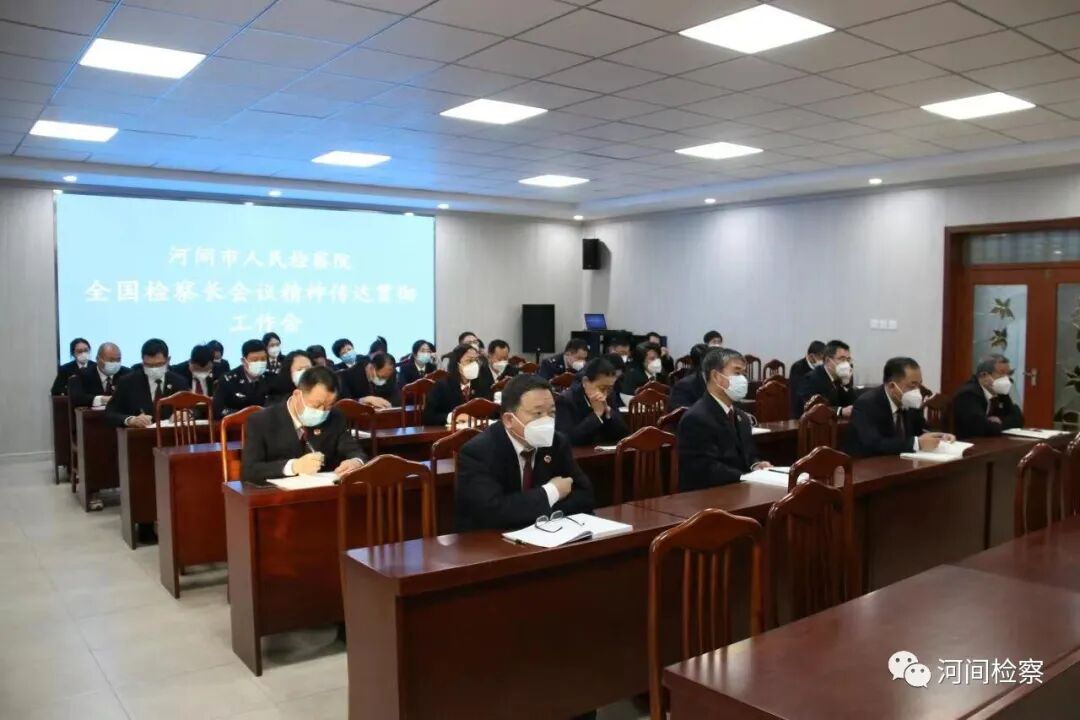 为深入学习贯彻全国检察长会议精神,2023年1月9日,河间市检察院第一时间召开全国检察长会议精神传达贯彻工作会,认真学习贯彻张军检察长、应勇副检察长讲话精神。院党组书记、检察长吴梦书主持会议,全体干警参加。
