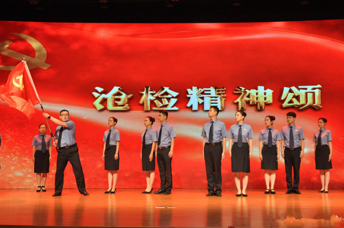 为庆祝建党97周年及河北省检察机关恢复重建40周年,河北省检察院举办了河北省首届检察文化节。7月1日,首届检察文化节开幕式暨“回首?瞭望?前行”诗歌朗诵会在国家检察官学院河北分院举行,来自全省11个市的检察机关及省院机关全部选送参演节目,沧州市检察院经过精心排练的诗歌朗诵作品《沧检精神颂》,最终荣获第二名的好成绩。