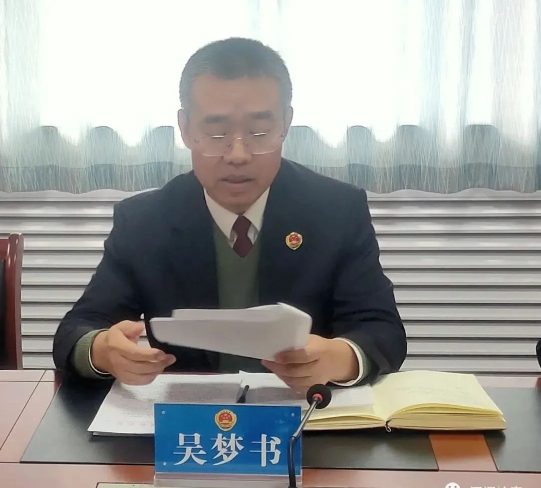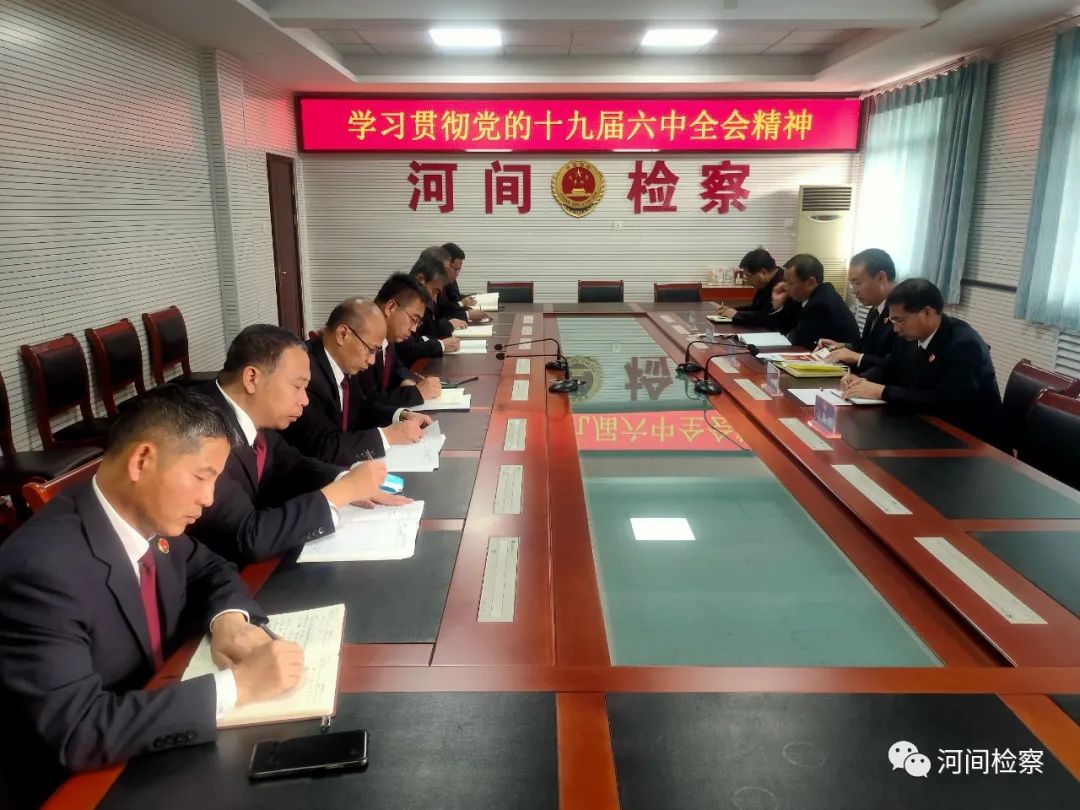 11月15日,河间市检察院召开党组扩大会议,传达学习党的十九届六中全会精神。院党组书记、检察长吴梦书主持会议,班子成员及各部室负责人参加了会议。